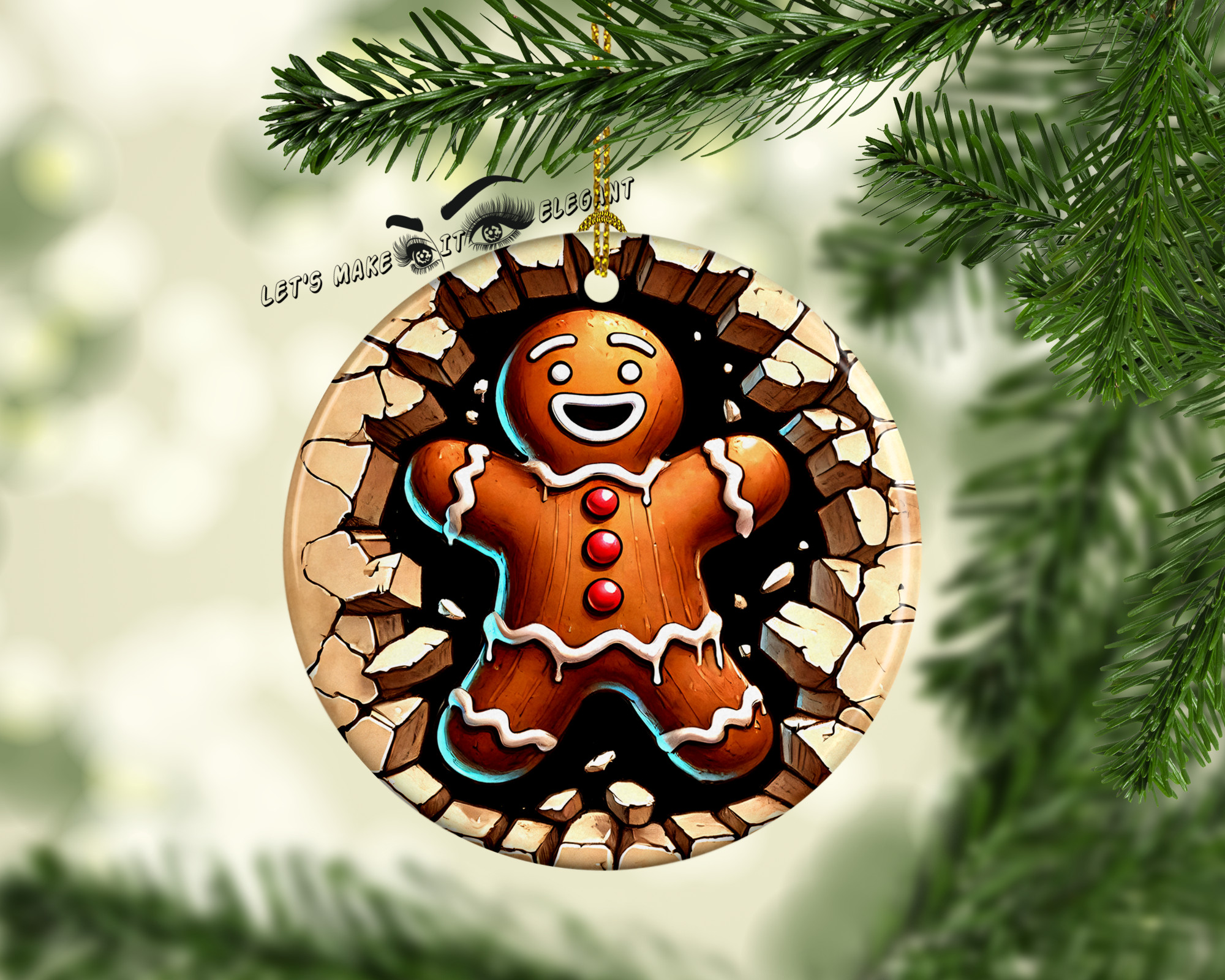 Baby Gingerbread Man 2 3D Broken Ceramic Photo Ornament