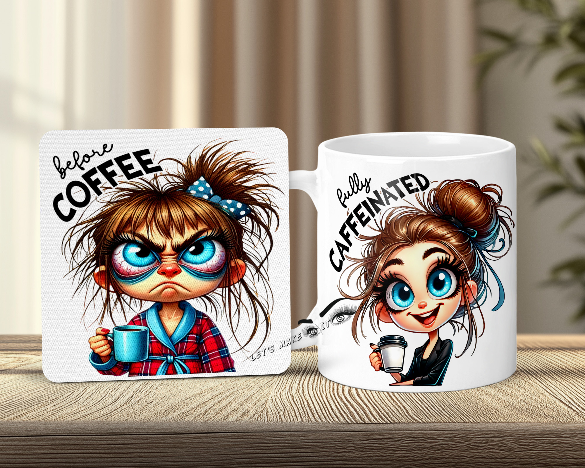 Before Coffee Female Mug and Coaster set