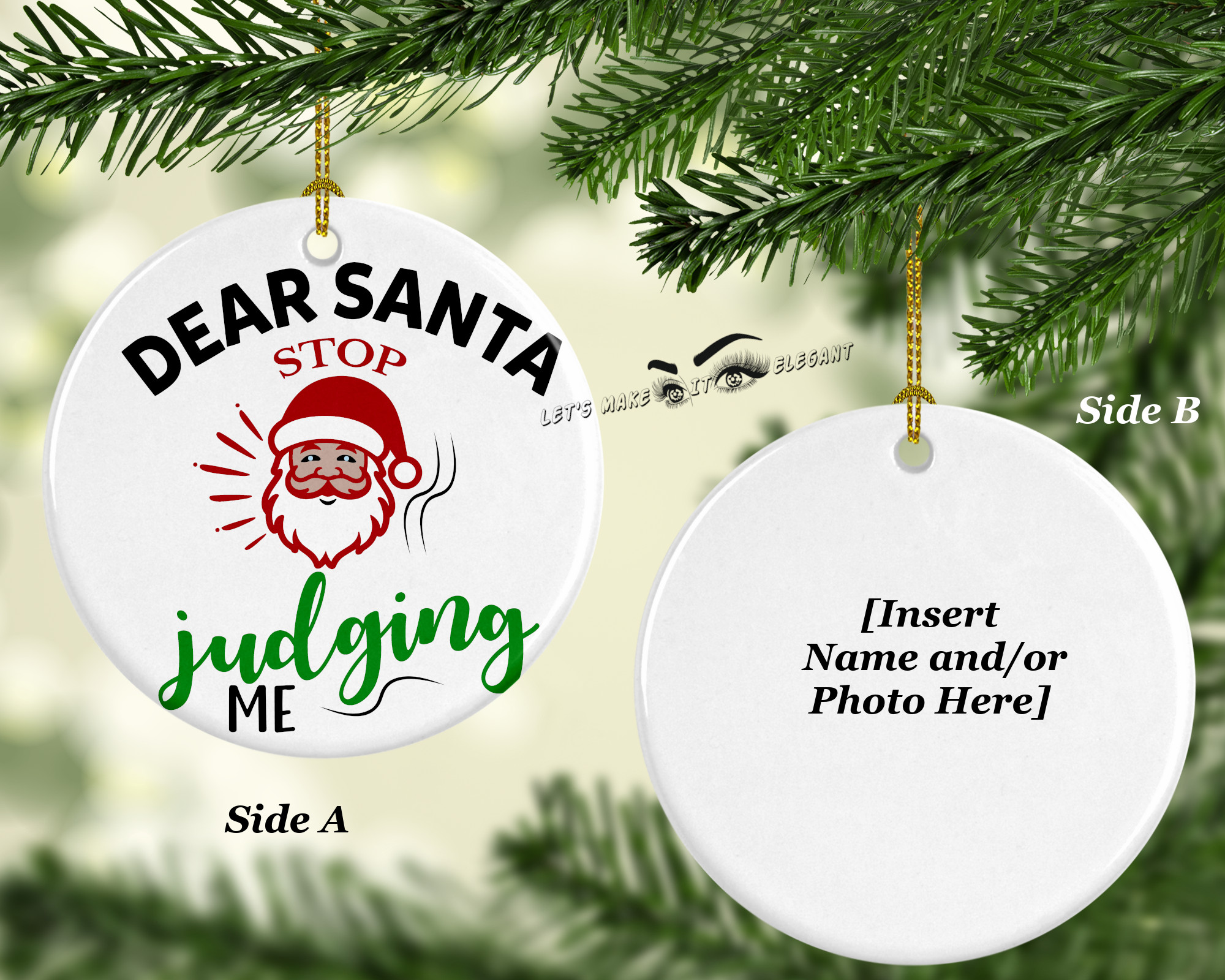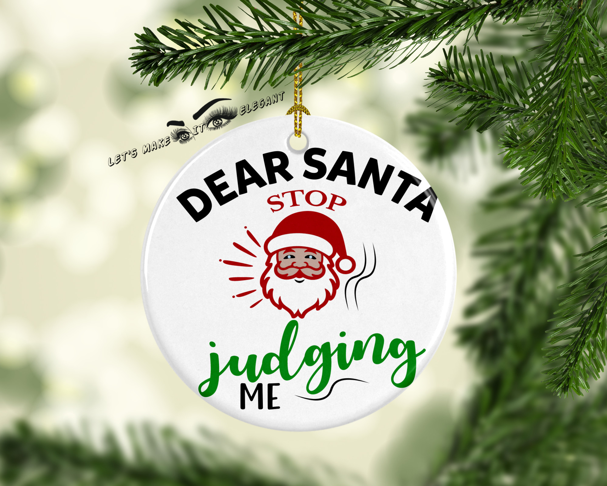 Dear Santa Stop Judging Me Ceramic Photo Ornament