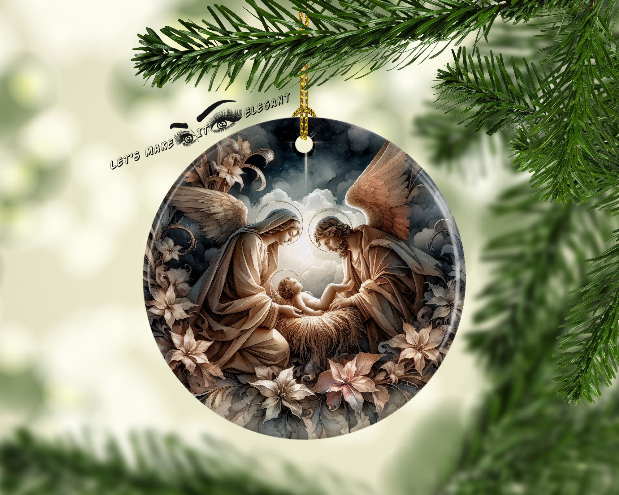 • Ceramic ball with three design choices (Christmas Tree, Bell, Poinsettia); adorned with gold hanger and gold hanging string