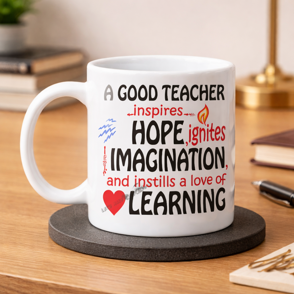 Start every day with purpose using the “Inspire & Ignite” Teacher Motivation Mug—a heartfelt tribute to the incredible impact educators make. Featuring the powerful message “A Good Teacher Inspires Hope, Ignites Imagination, and Instills a Love of Learning”, this mug is a daily reminder of the passion and dedication behind teaching.
