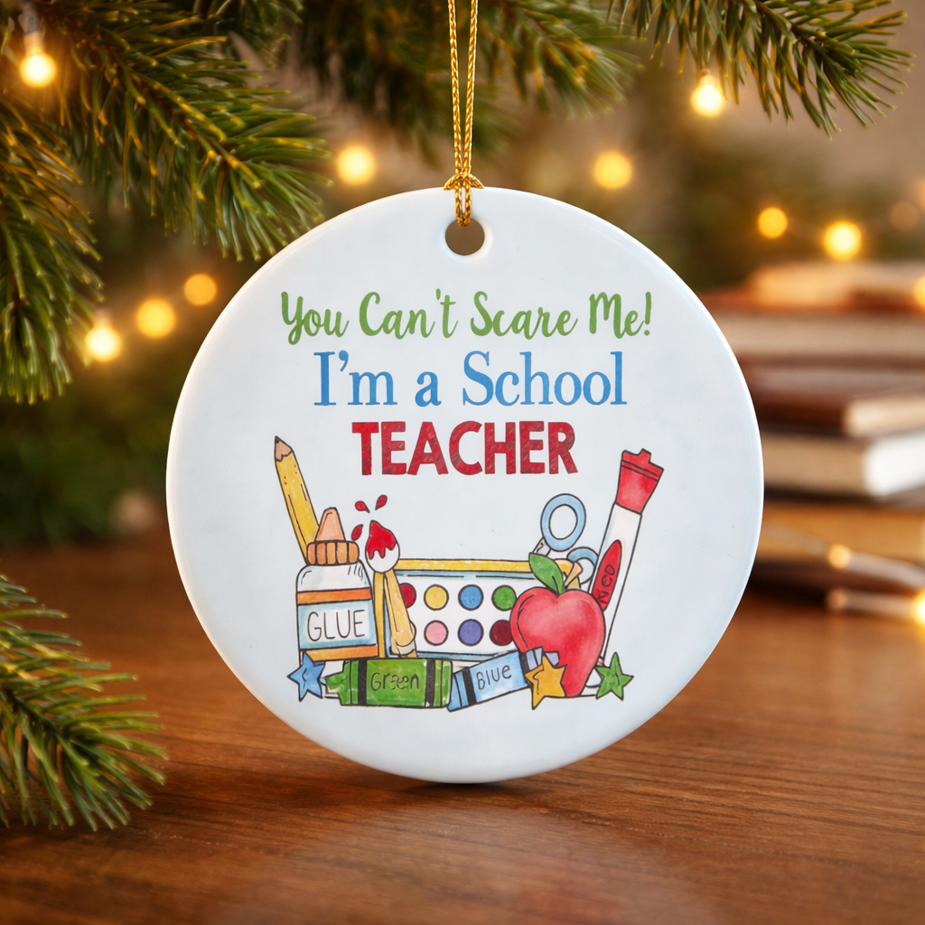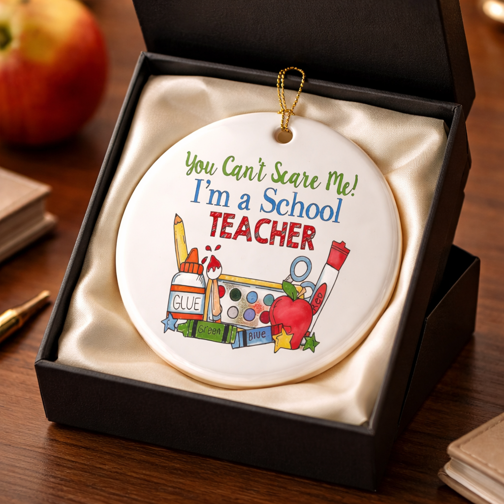 Celebrate the joy and dedication of teaching with the “Teacher Strong” Keepsake Ornament—a charming and meaningful piece perfect for any educator. Featuring the uplifting message “You Can’t Scare Me! I’m a School Teacher”, this ornament combines humor and pride in a beautifully designed keepsake.