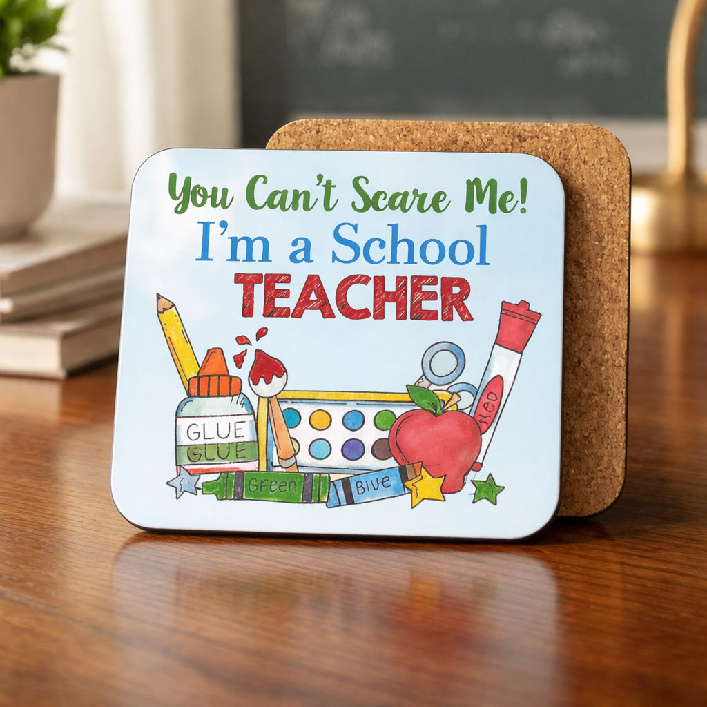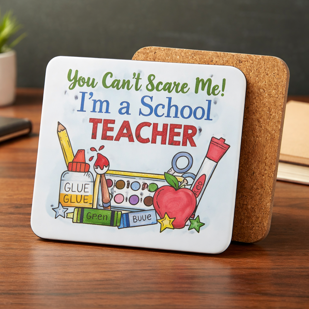 Add a touch of personality and protection to any surface with the “Teacher Strong” Premium Coaster. Featuring the bold and cheerful message “You Can’t Scare Me! I’m a School Teacher”, this coaster is the perfect blend of humor, pride, and everyday practicality.